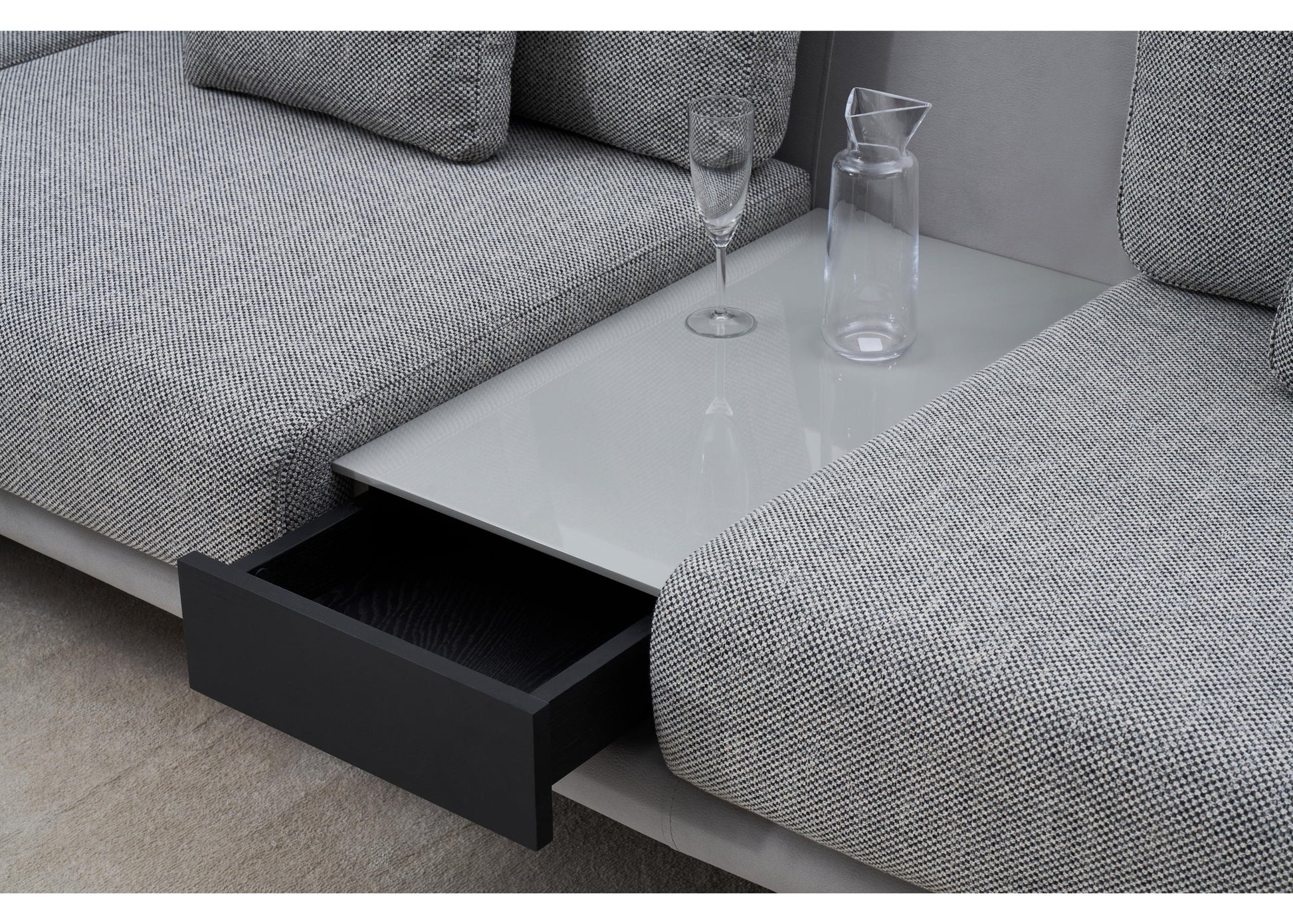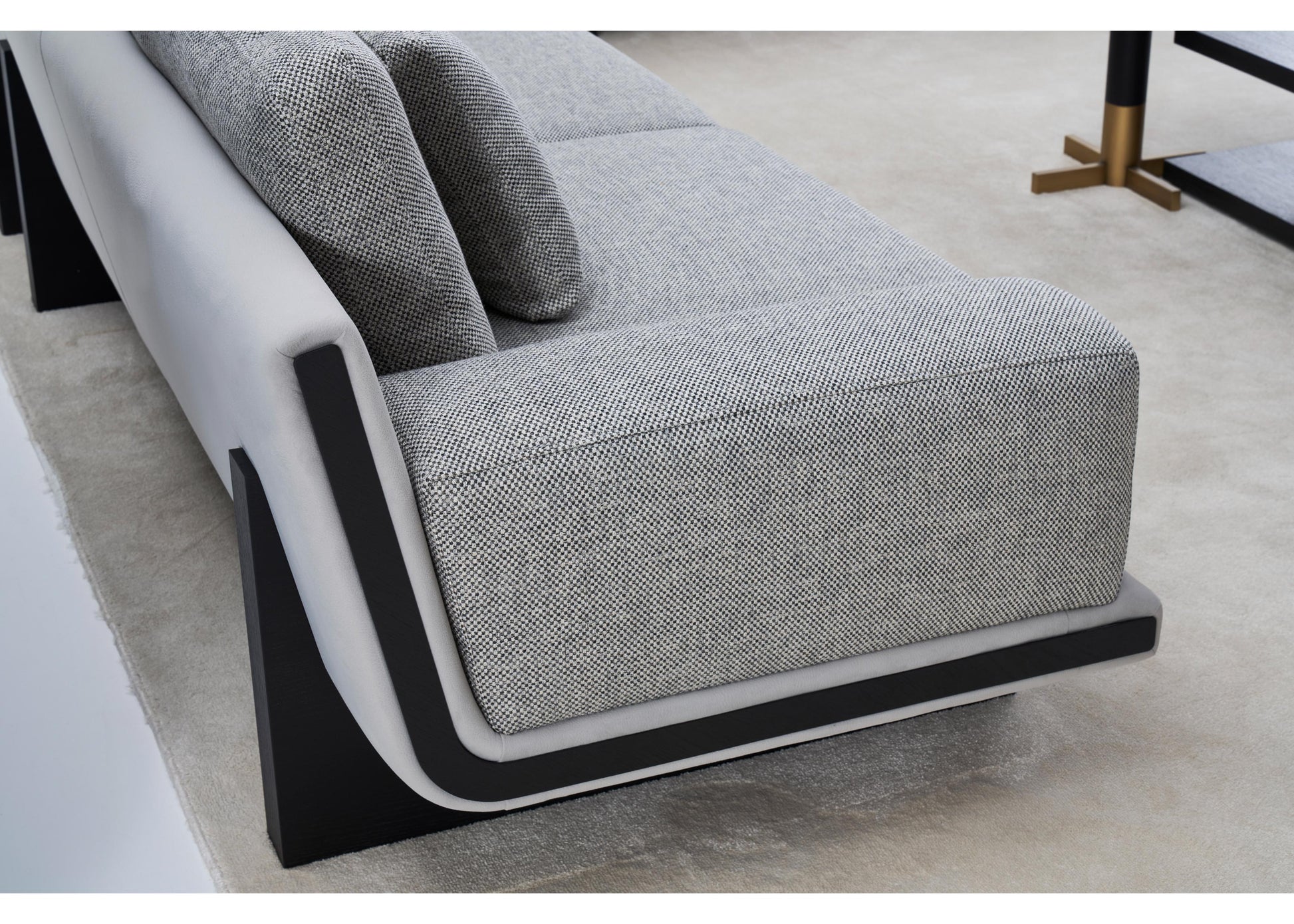Dieses Sofa besticht durch klare Geometrie und feine Verarbeitung. Es steht für handwerkliche Qualität und zeitloses Design.