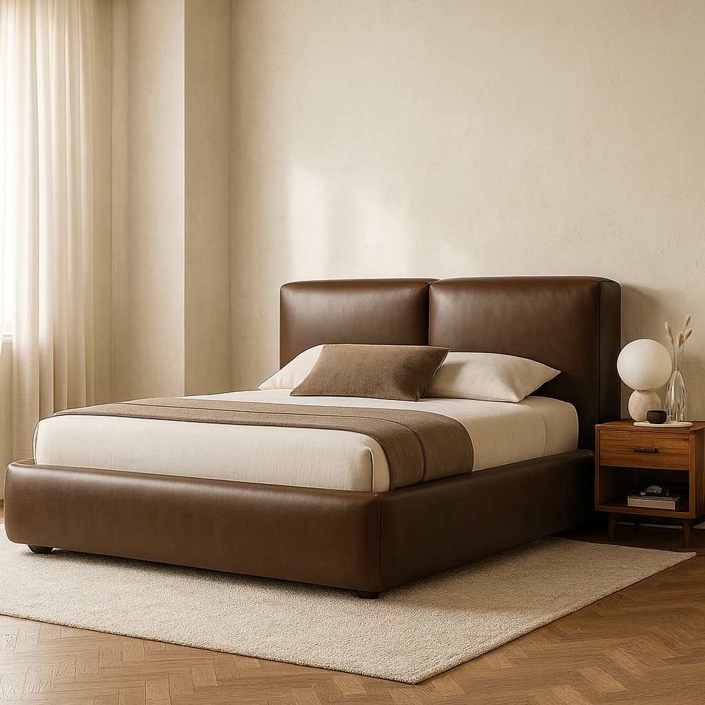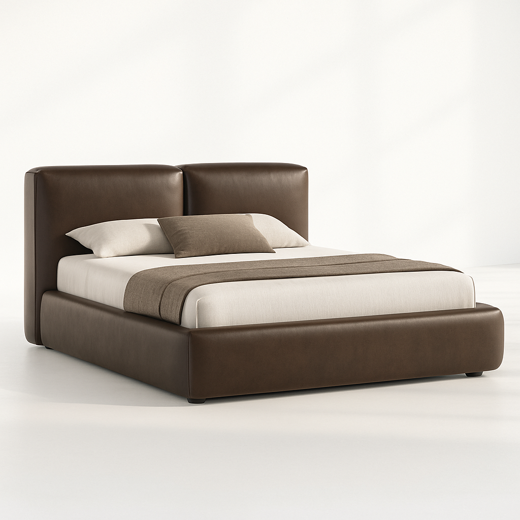 Ein ruhiges, strukturiertes Bett, das durch seine feine Geometrie und proportionale Ausgewogenheit besticht.