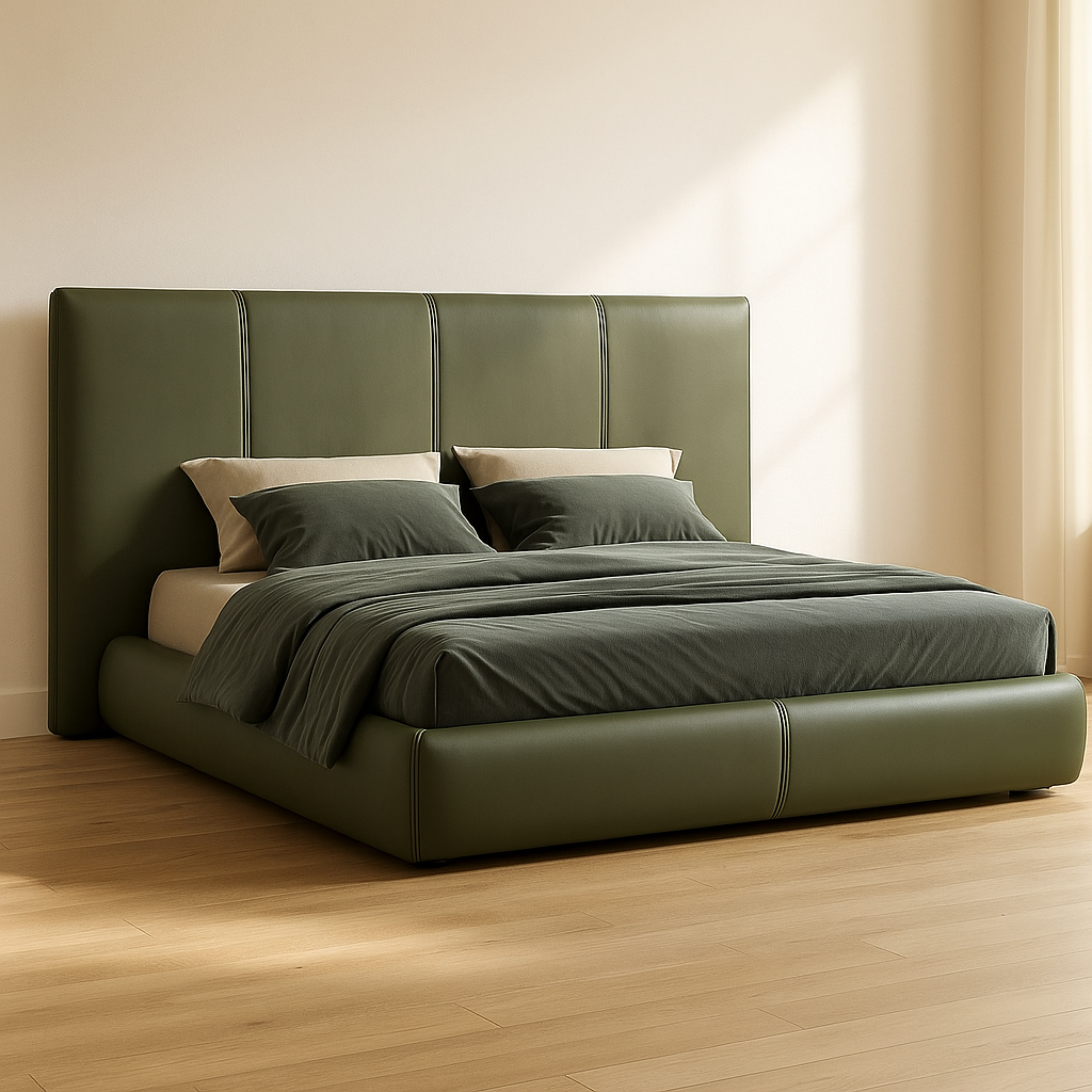 Ein architektonisch gestaltetes Bett, das Funktion und Ästhetik in perfekter Balance vereint. Ausdruck zeitloser Handwerkskunst.