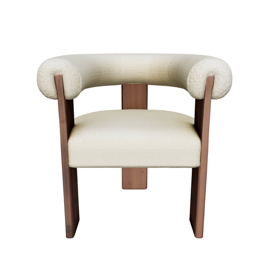 Ein Stuhl mit ruhiger Silhouette und feiner Geometrie. Er unterstreicht die architektonische Ordnung des Raumes.