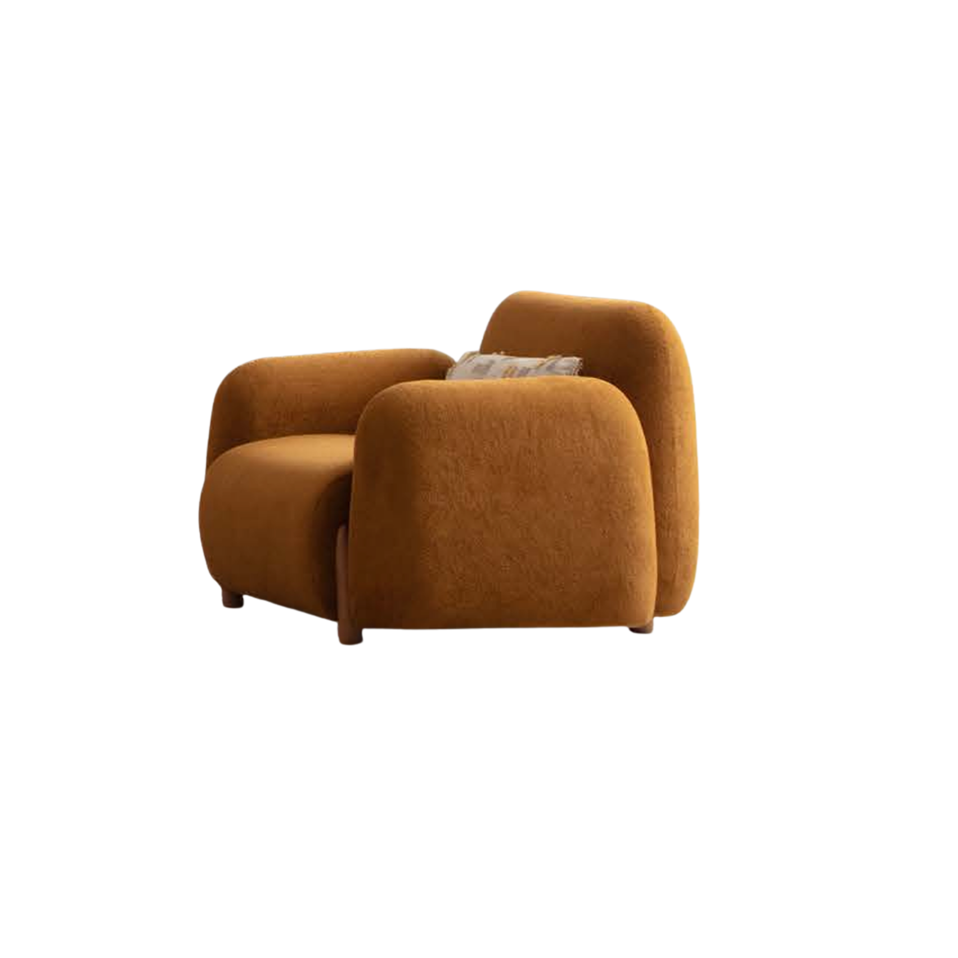 Ein Sessel, der Ruhe, Struktur und Handwerkskunst ausstrahlt. Für Interieurs mit stilvoller Zurückhaltung.