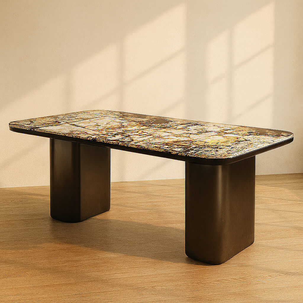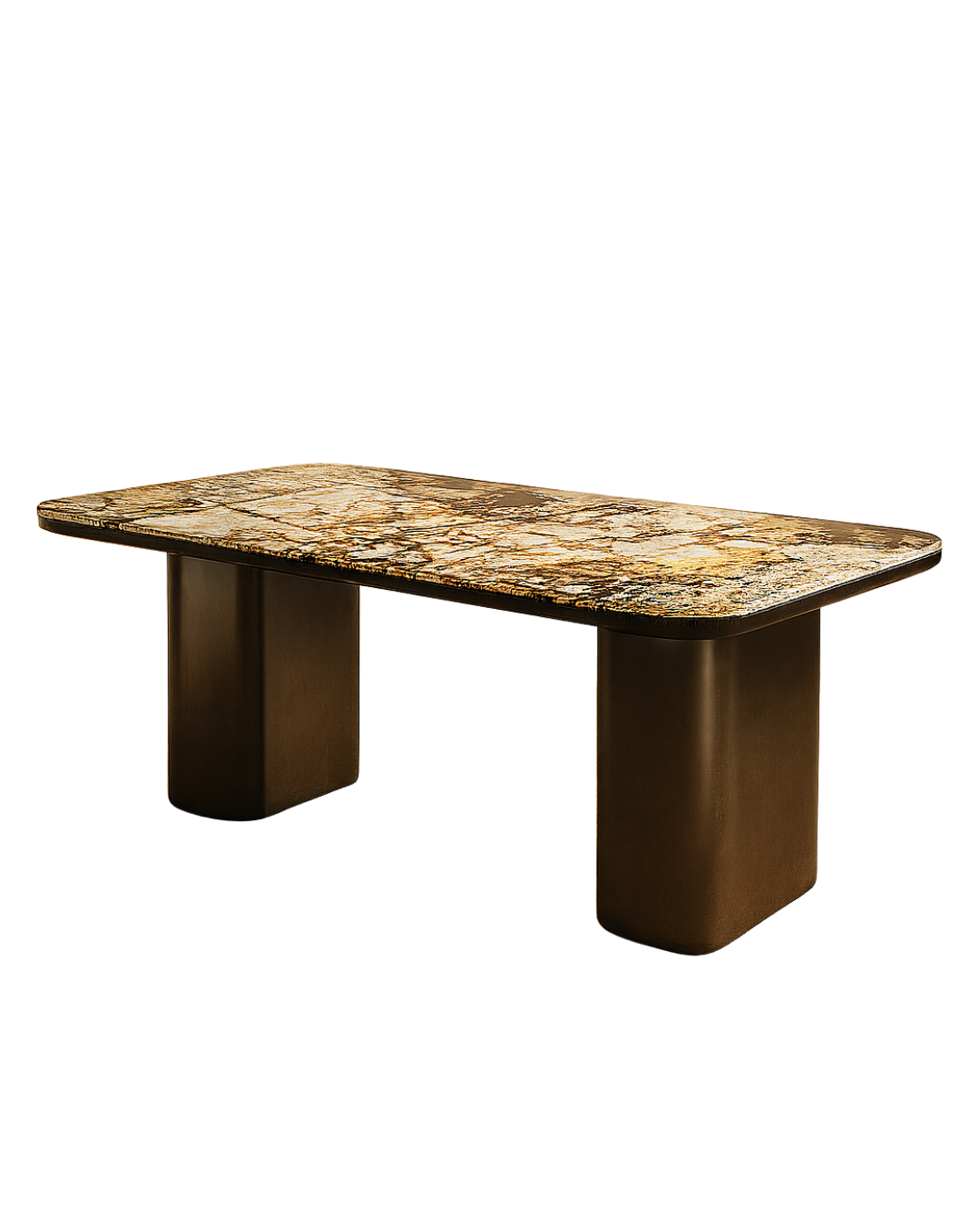 Ein Esstisch mit reduzierter Gestaltung und klarer Silhouette. Ausdruck von handwerklicher Qualität und architektonischer Klarheit.