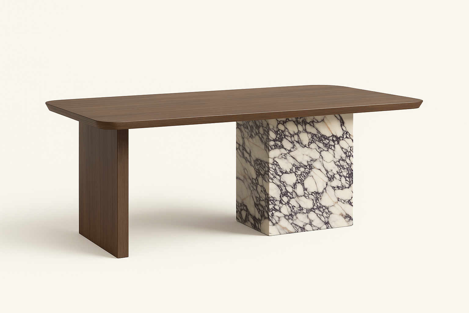 Ein Esstisch mit reduzierter Gestaltung und klarer Silhouette. Ausdruck von handwerklicher Qualität und architektonischer Klarheit.