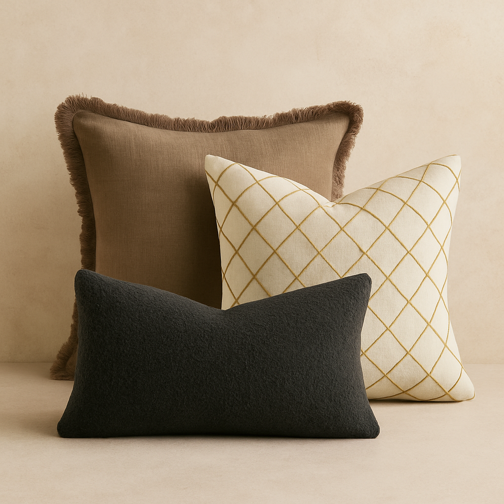 Ein harmonisch abgestimmtes Kissen-Set, das Struktur und Sanftheit miteinander verbindet.