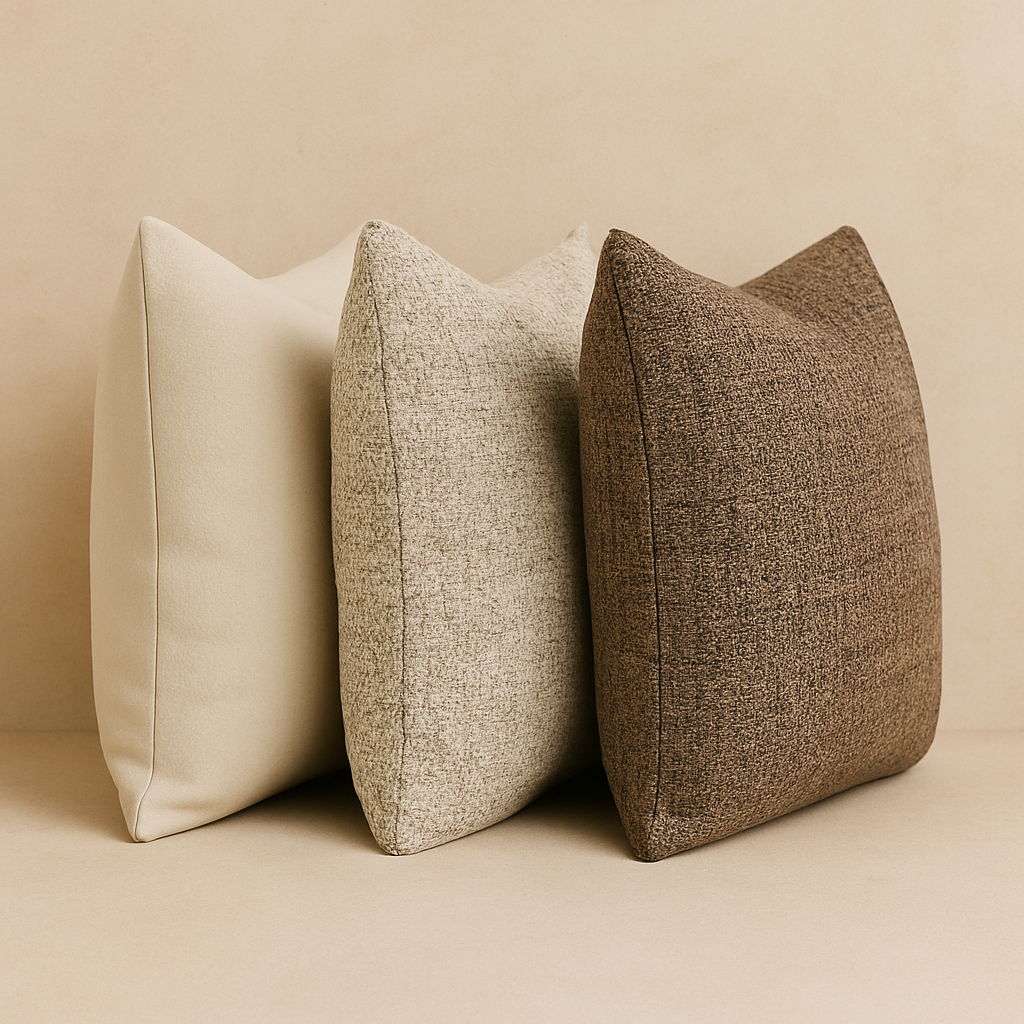 Ein harmonisch abgestimmtes Kissen-Set, das Struktur und Sanftheit miteinander verbindet.