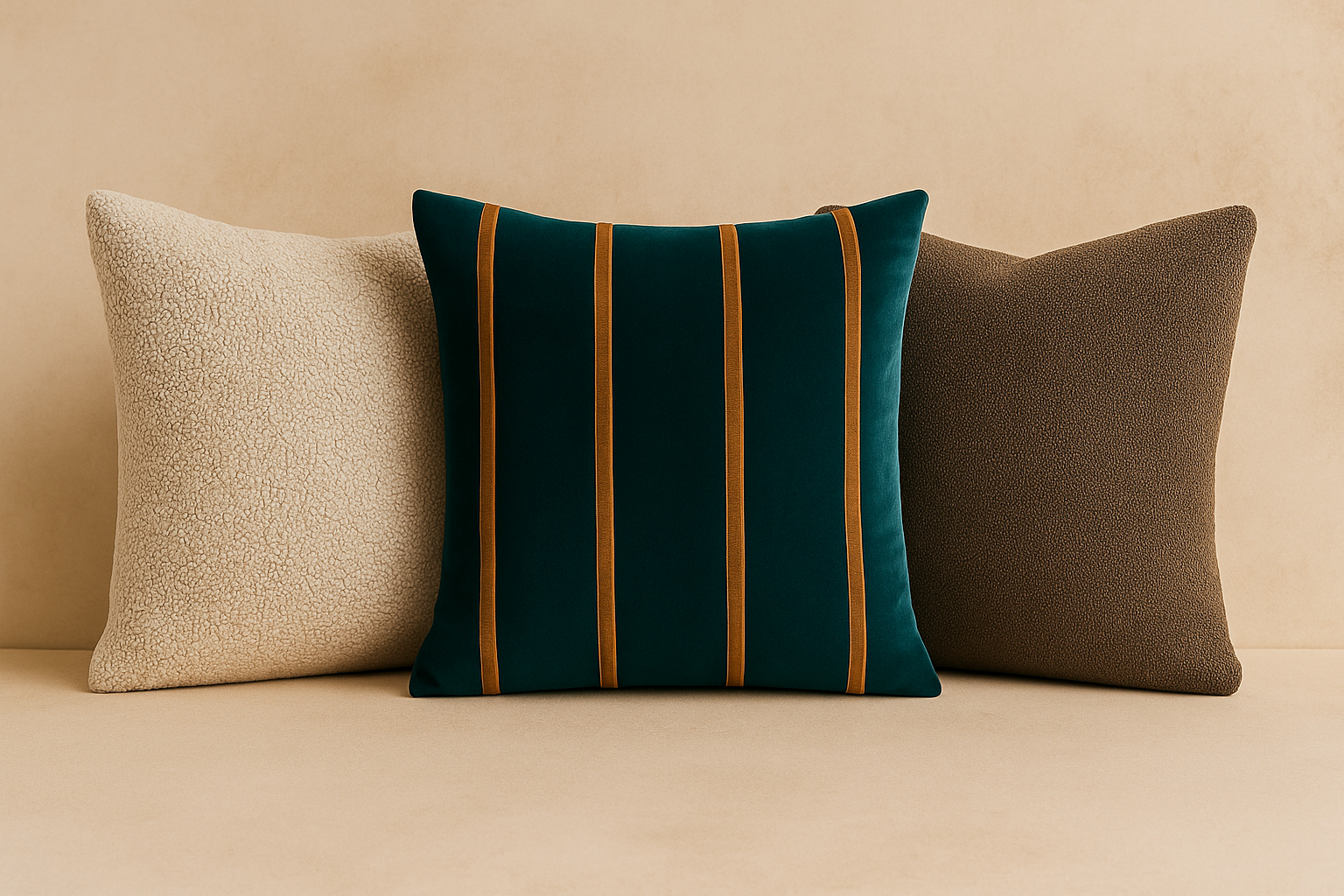 Ein harmonisch abgestimmtes Kissen-Set, das Struktur und Sanftheit miteinander verbindet.